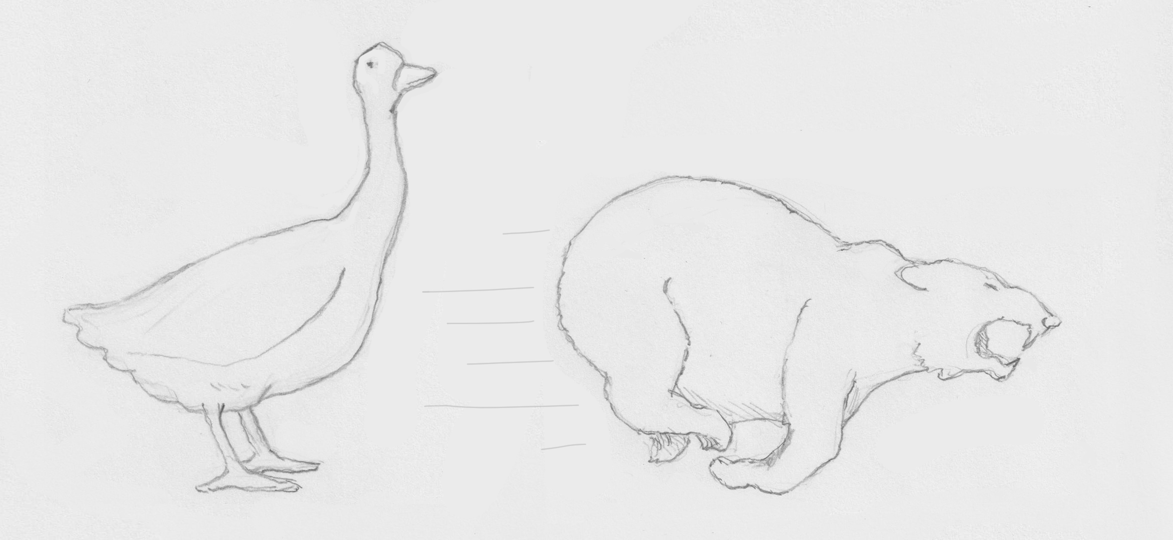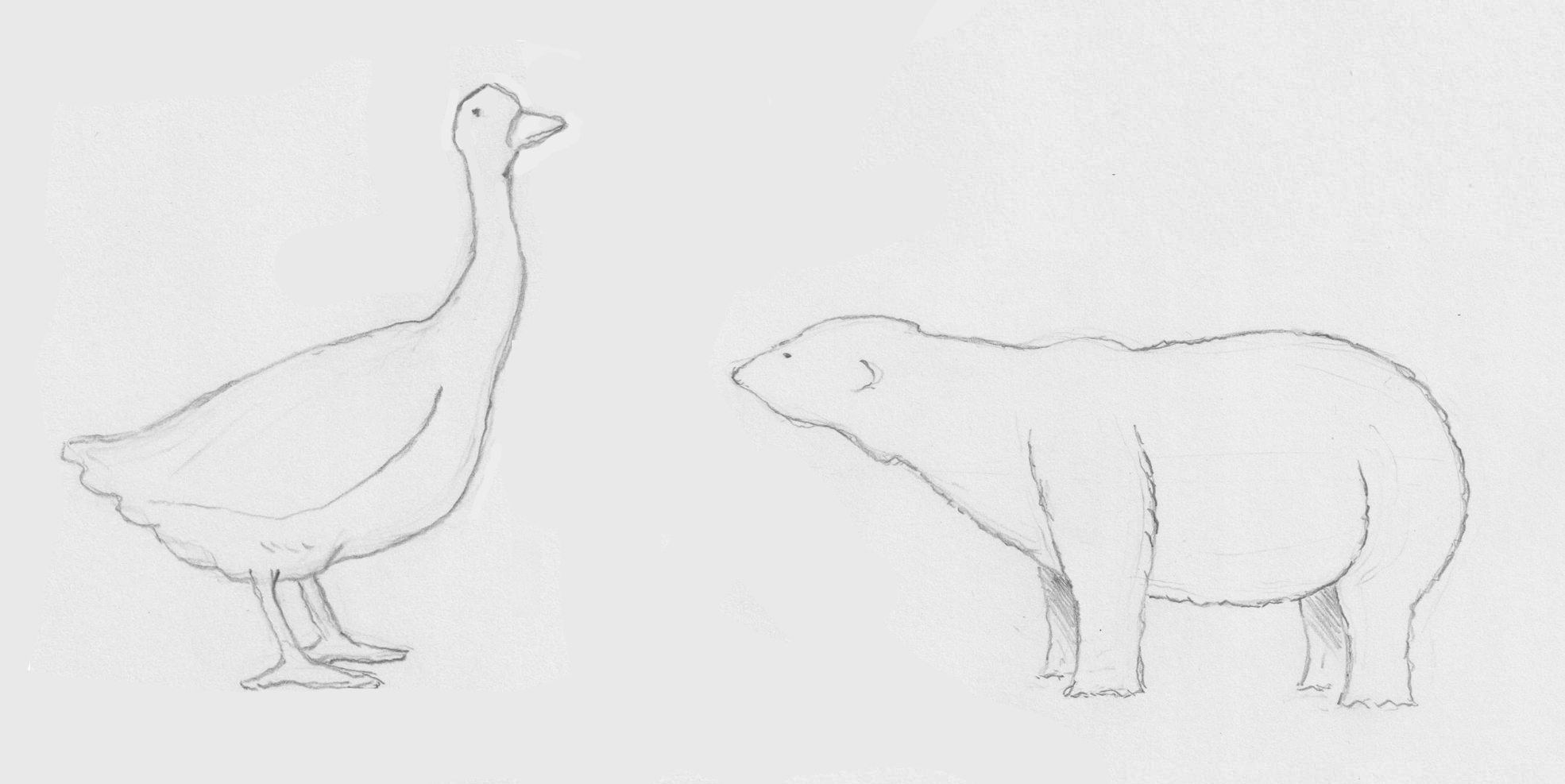 Oefening: Misschien vind je het tot slot van deze les leuk om een of meer van de volgende met een 2B basispotlood getekende dieren na te tekenen of zelfs te printen en over te trekken om er iets mee te doen. Een aantal dieren komt uit de strip Little Nemo in Slumberland van Winsor McCay (1869-1934), grondlegger van strip- en animatiekunst.
