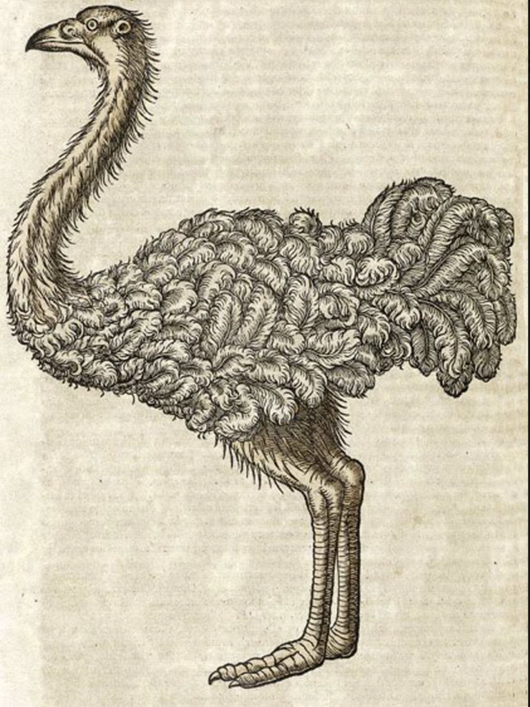 Bij deze struisvogel uit 1551 zijn de veren heel gedetailleerd en plastisch stuk voor stuk getekend.