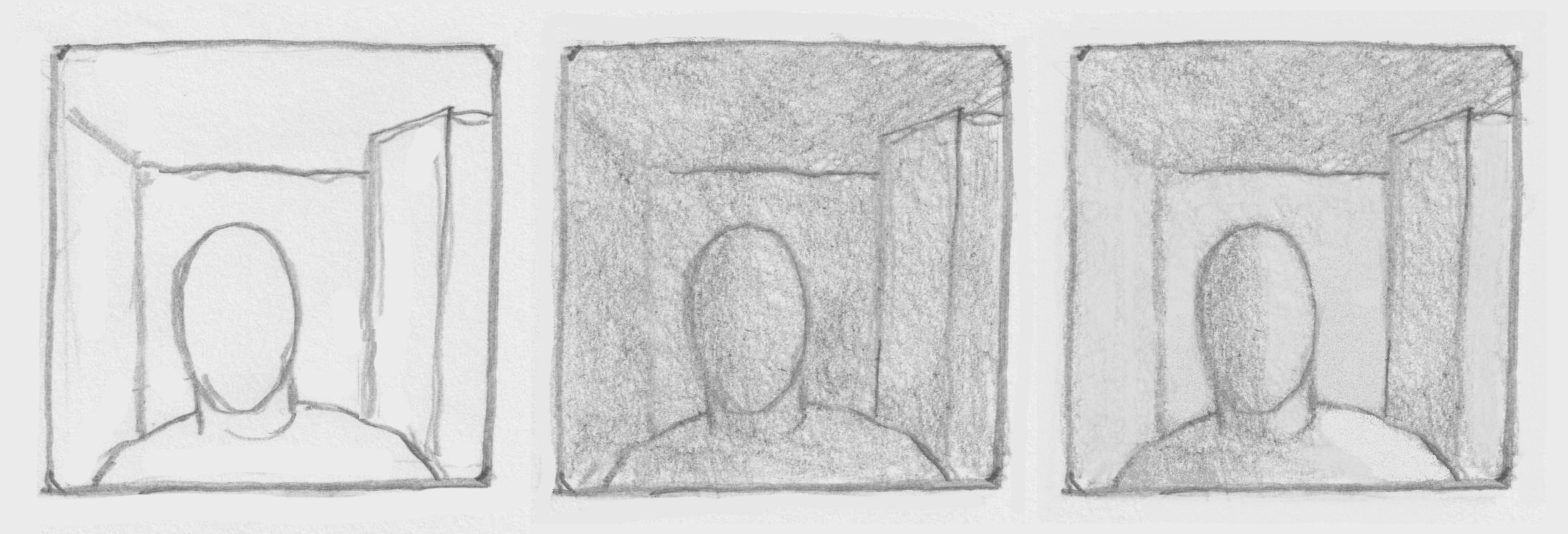 Oefening 2: teken figuren zoals hieronder en verander de omtreklijn of schaduwen met je gum.