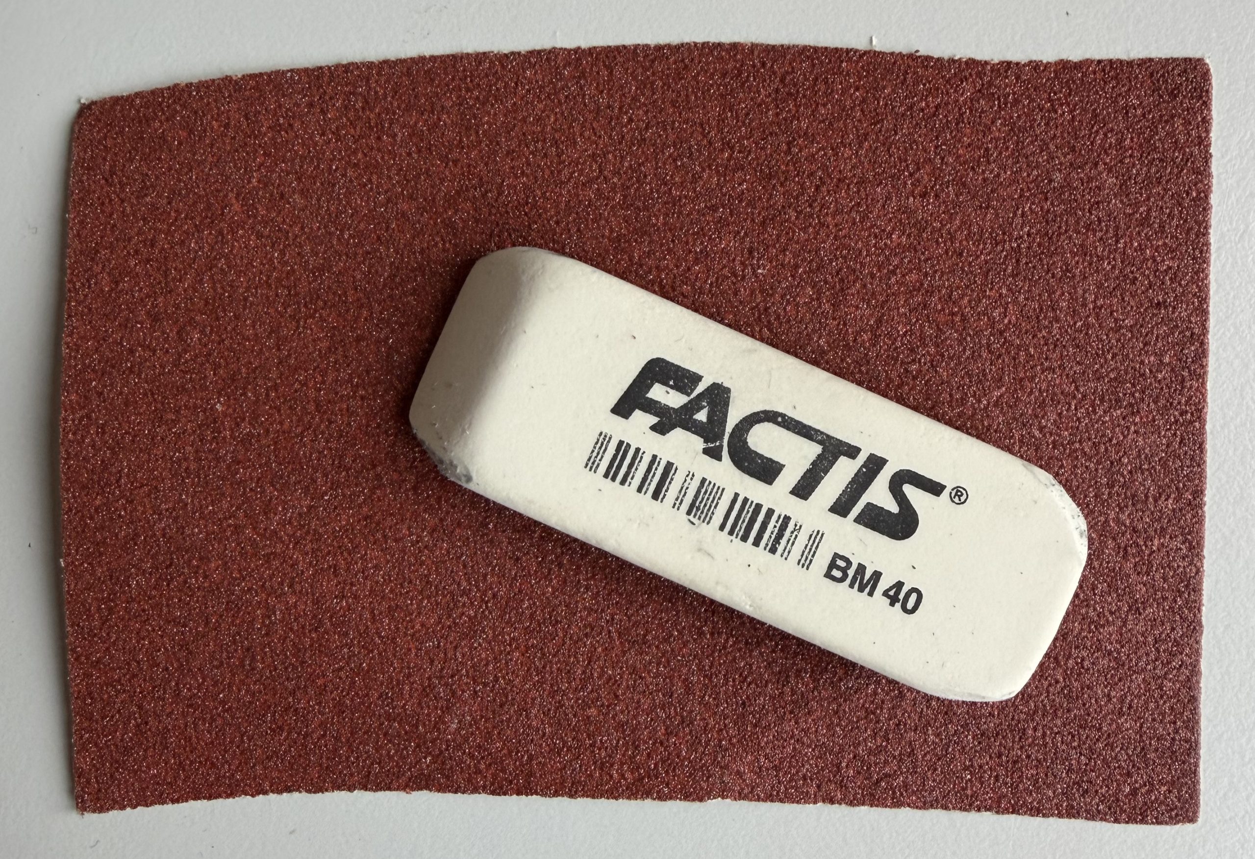 Een vuil geworden gum kun je eenvoudig met een schuurpapiertje schoonmaken.