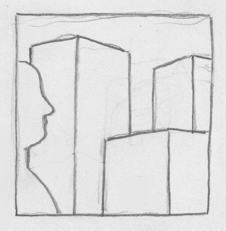 De combinatie van grijstinten en gumwerk kan een lijntekening sfeer geven. In stap 2 is de hele lijntekening grijs gemaakt. In stap 3 heeft het gum de lichte delen getekend.