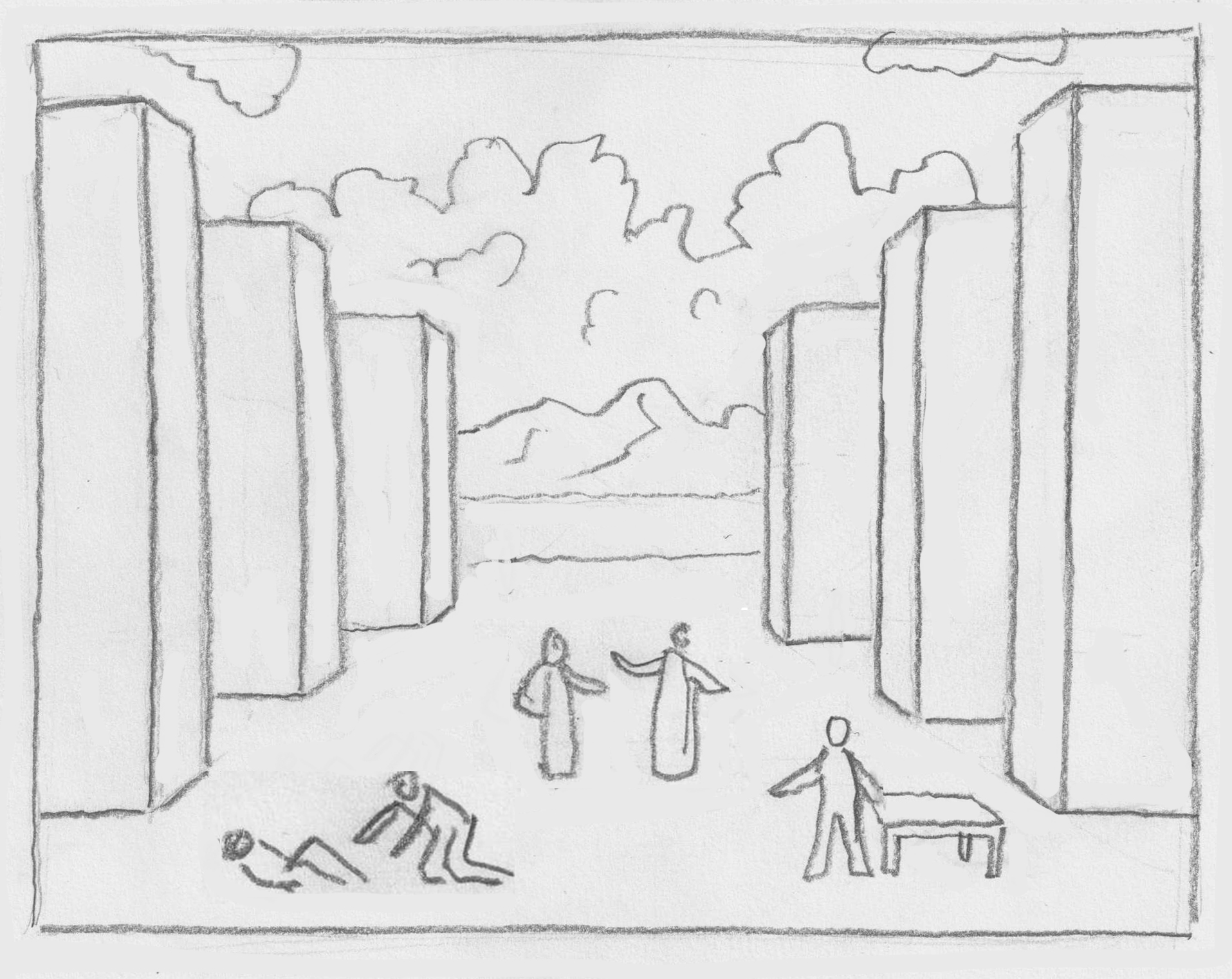EXTRA: ontwerp een toneel met coulissen en een achterdoek, eventueel met mijn opzet als basis. Je kunt de coulissen natuurlijk totaal andere vormen geven.