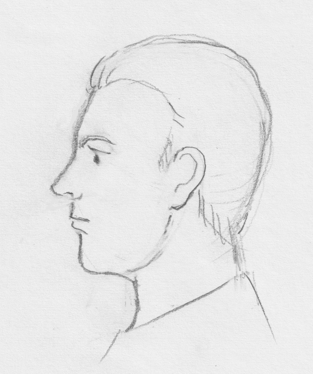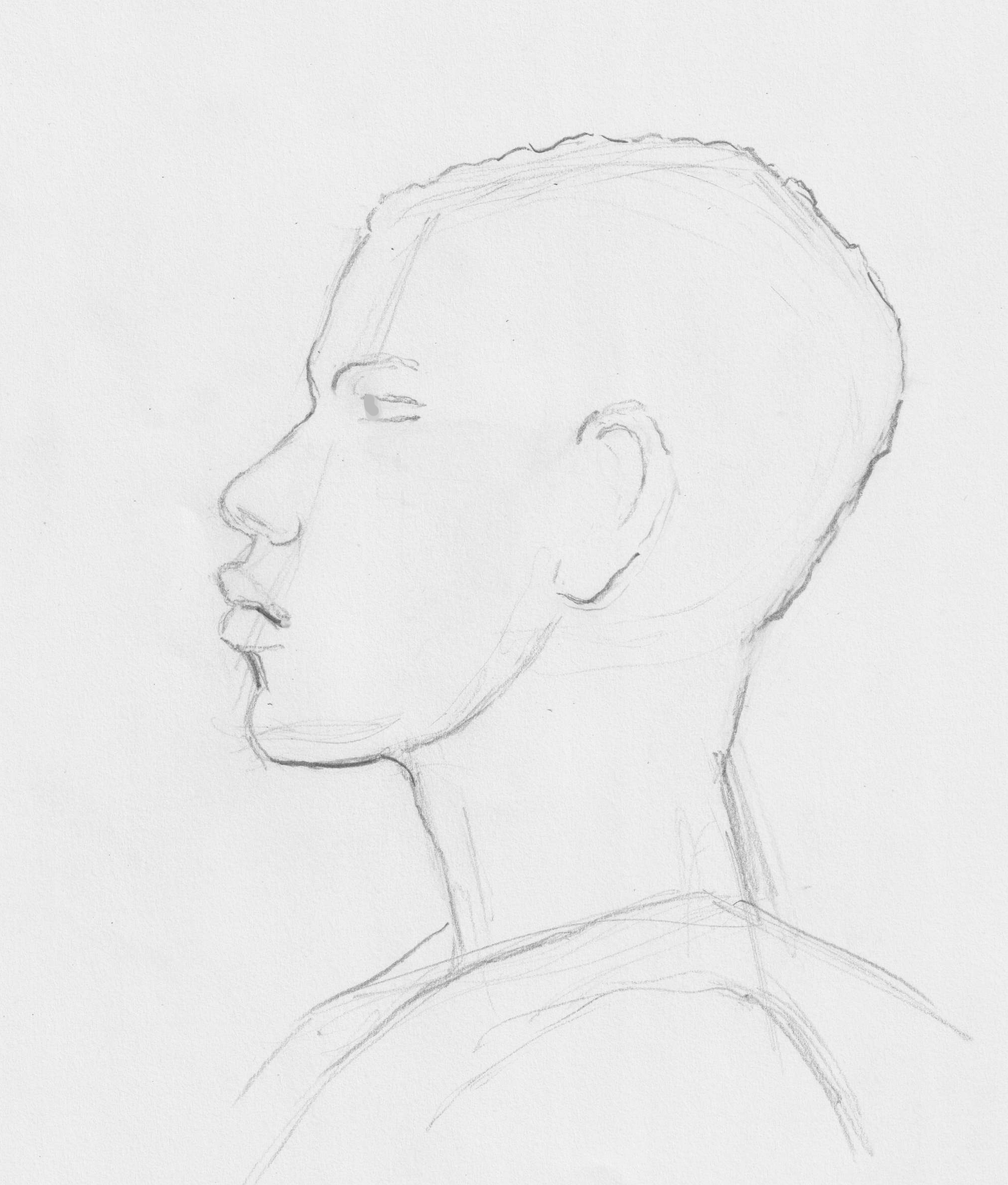 When drawing side views of real people, light assisting lines can be very helpful, as I did in the drawing on the right of a young African man. For example, the line from his forehead to mouth is diagonal, and almost vertical in the drawing on the left. This prevents you from making a false start.