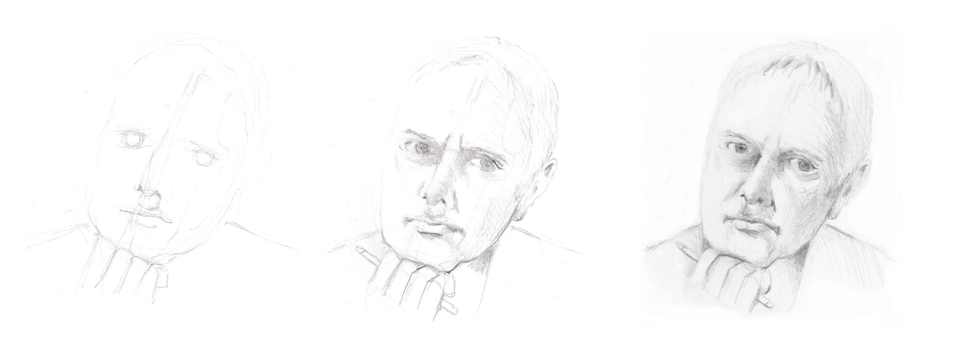 Ultimately, there are many ways to draw portraits. One artist begins with a schematic layout, another with the eyes, or even with the residual shape around the head. One draws subtly, another more roughly. A personal style is often only developed after years of study. Marvel at the diversity of both old and contemporary drawings and paintings in museums.